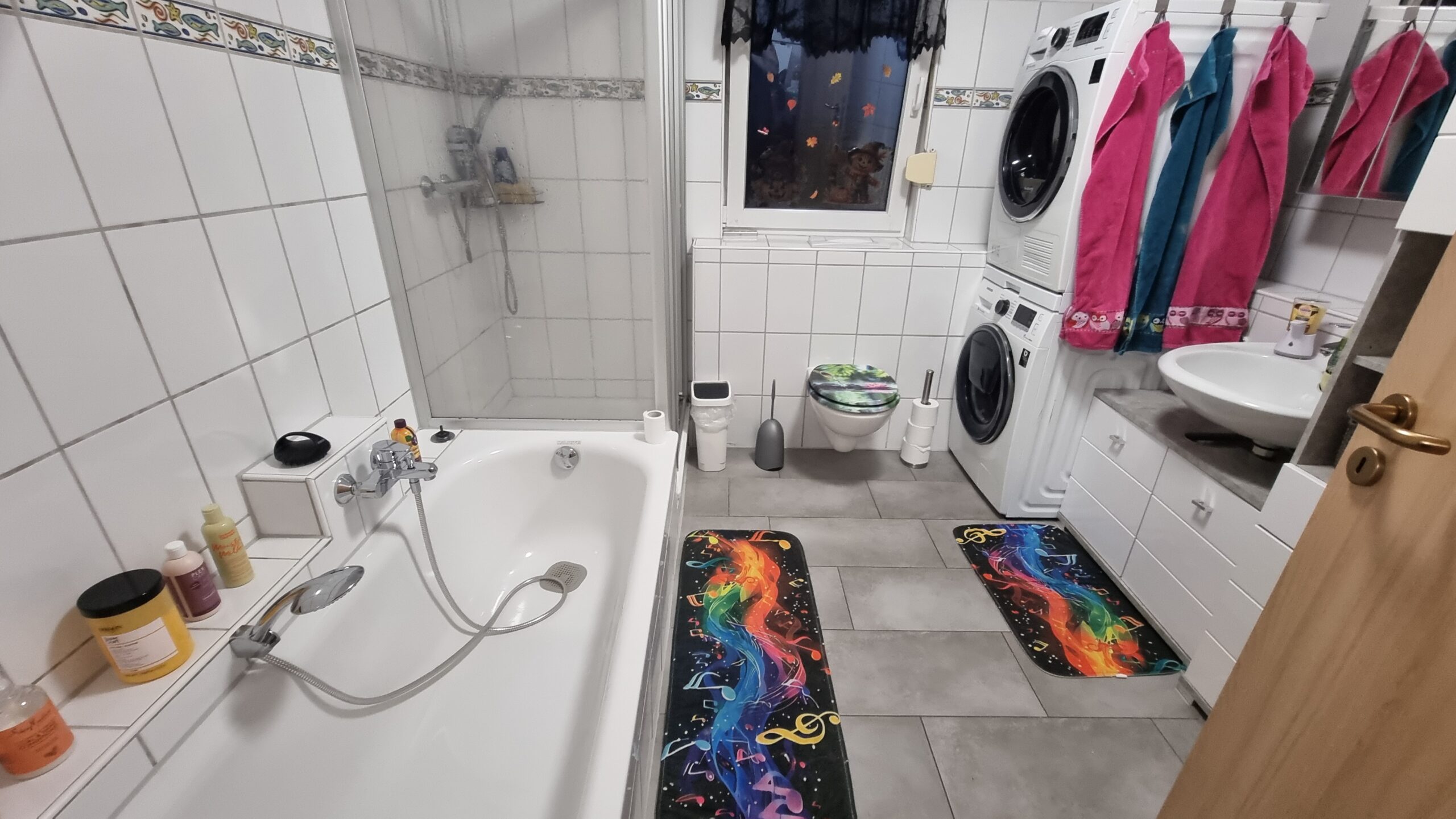 Ein Wäschetrockenraum mit Anschluss für einen Wäschetrockner und ein Fahrradkeller mit Außentreppe sind für alle Parteien verfügbar. Zu der Wohnung gehört noch ein separater Keller.